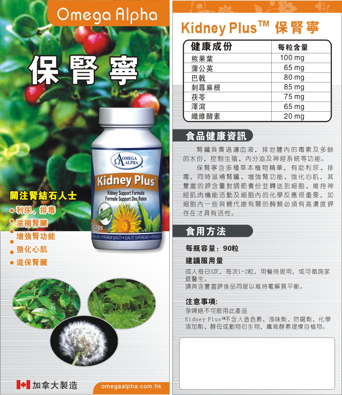 保腎寧含多種草本植物精華,有助利尿、排毒,同時滋潤腎臟、增強腎功能、強化心肌,其豐富的鉀含量對調節養份並轉送到細胞、維持神經肌肉機能活動及細胞內的化學反應很重要,如細胞內一些與糖代謝有關的酶類必須有高濃度鉀存在才具有活性。